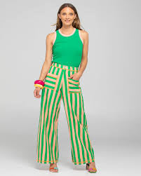 The Boom Shankar Sana Pant is a bold wide-leg pant crafted from 100% cotton in our signature stripes, complete with front patch pocket detail and contrast neon stitching.
