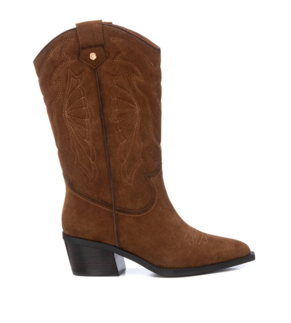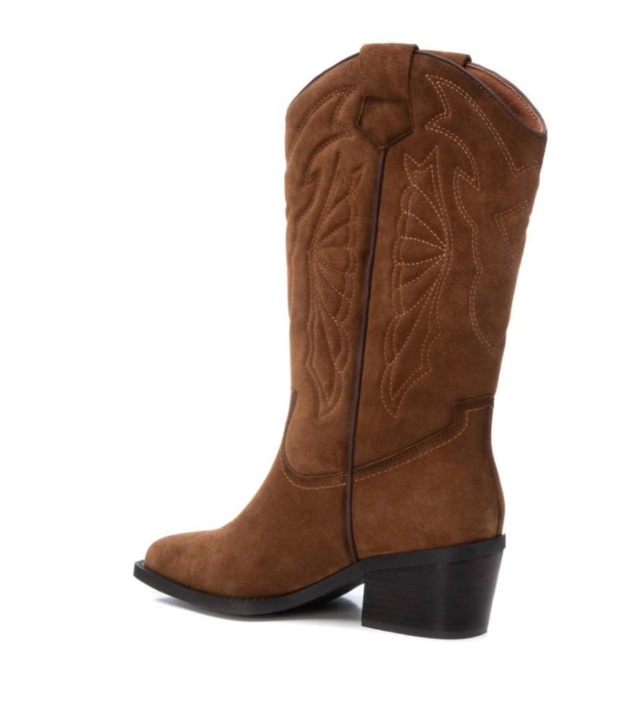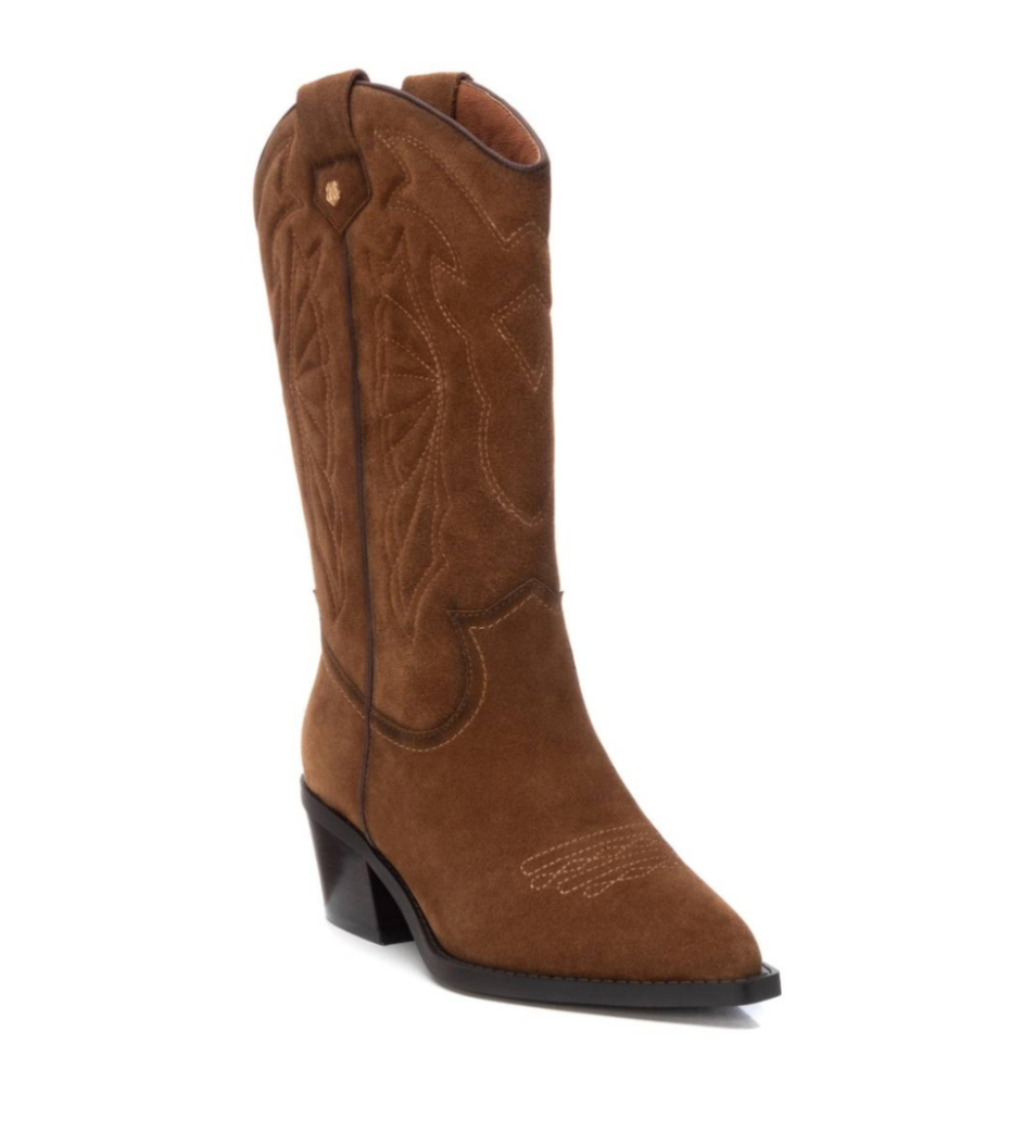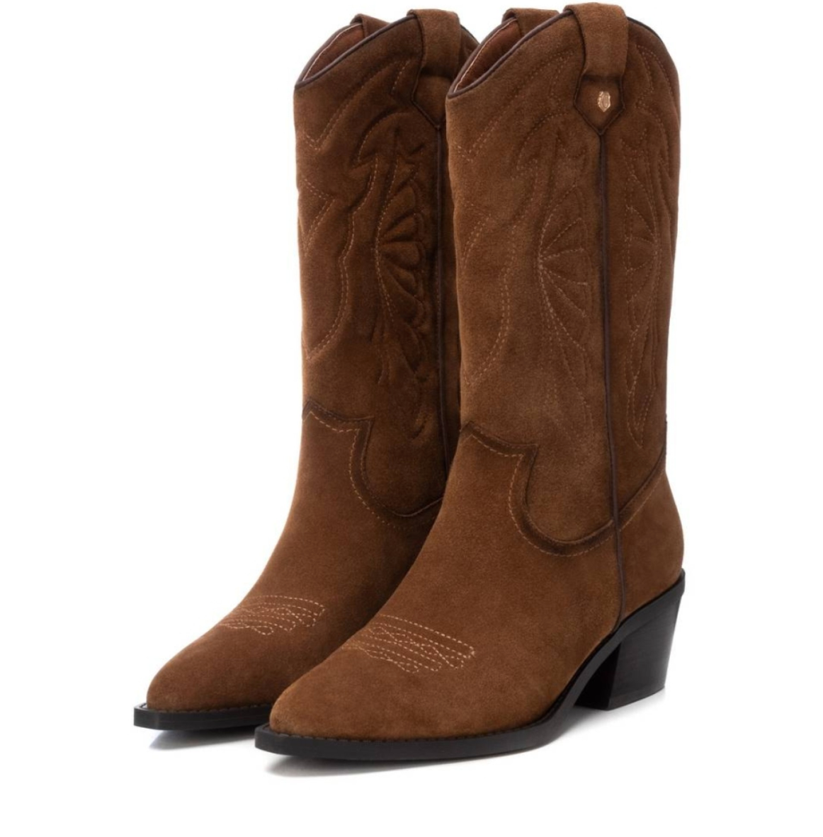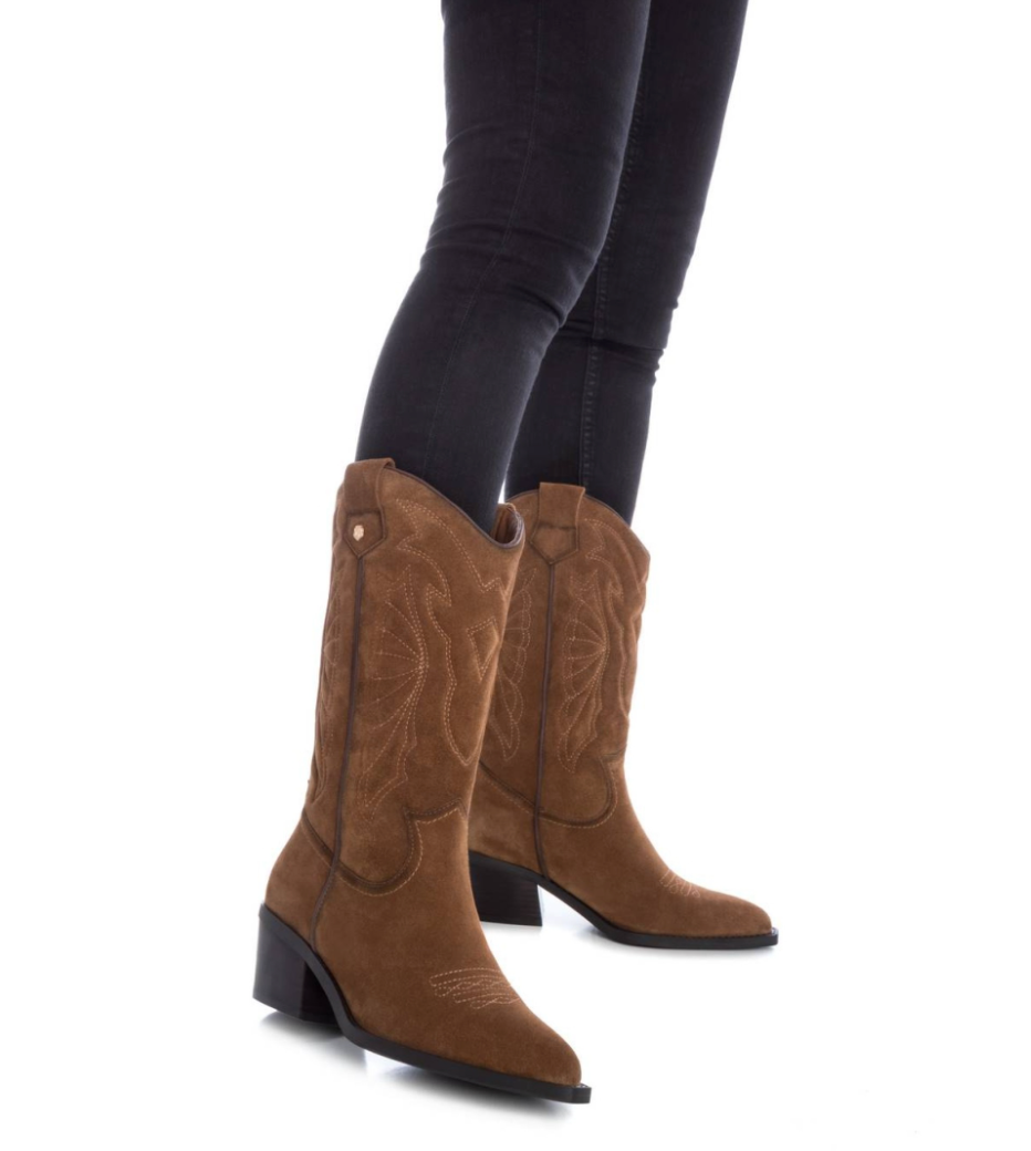 Women's boots by Carmela. Made of high quality split leather. Cowboy embroidery on the shaft of the boot. Finished in an elegant tip. Non-slip rubber sole, heel of 6 cm.