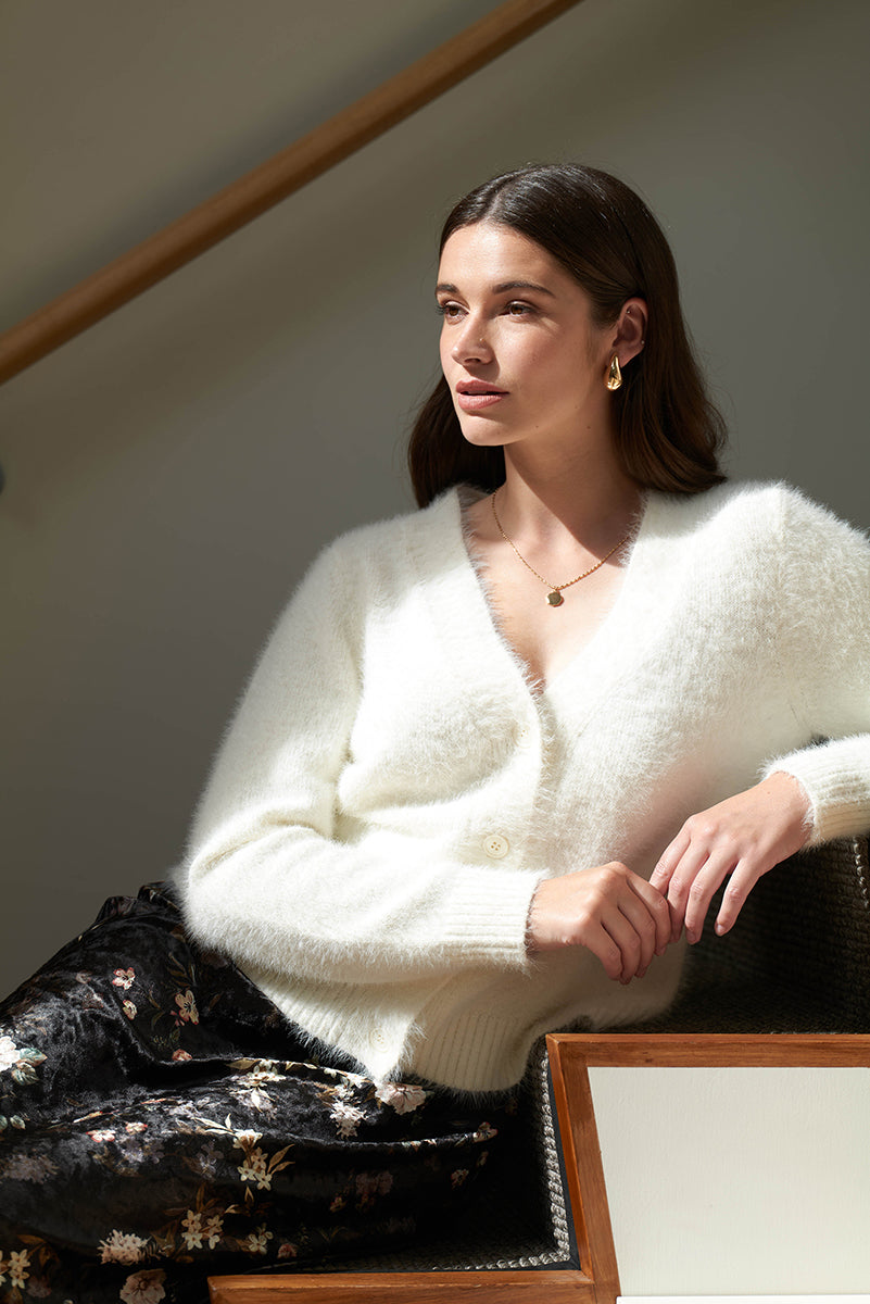 Foil Top Bird Cardigan (Pearl or Saphire)