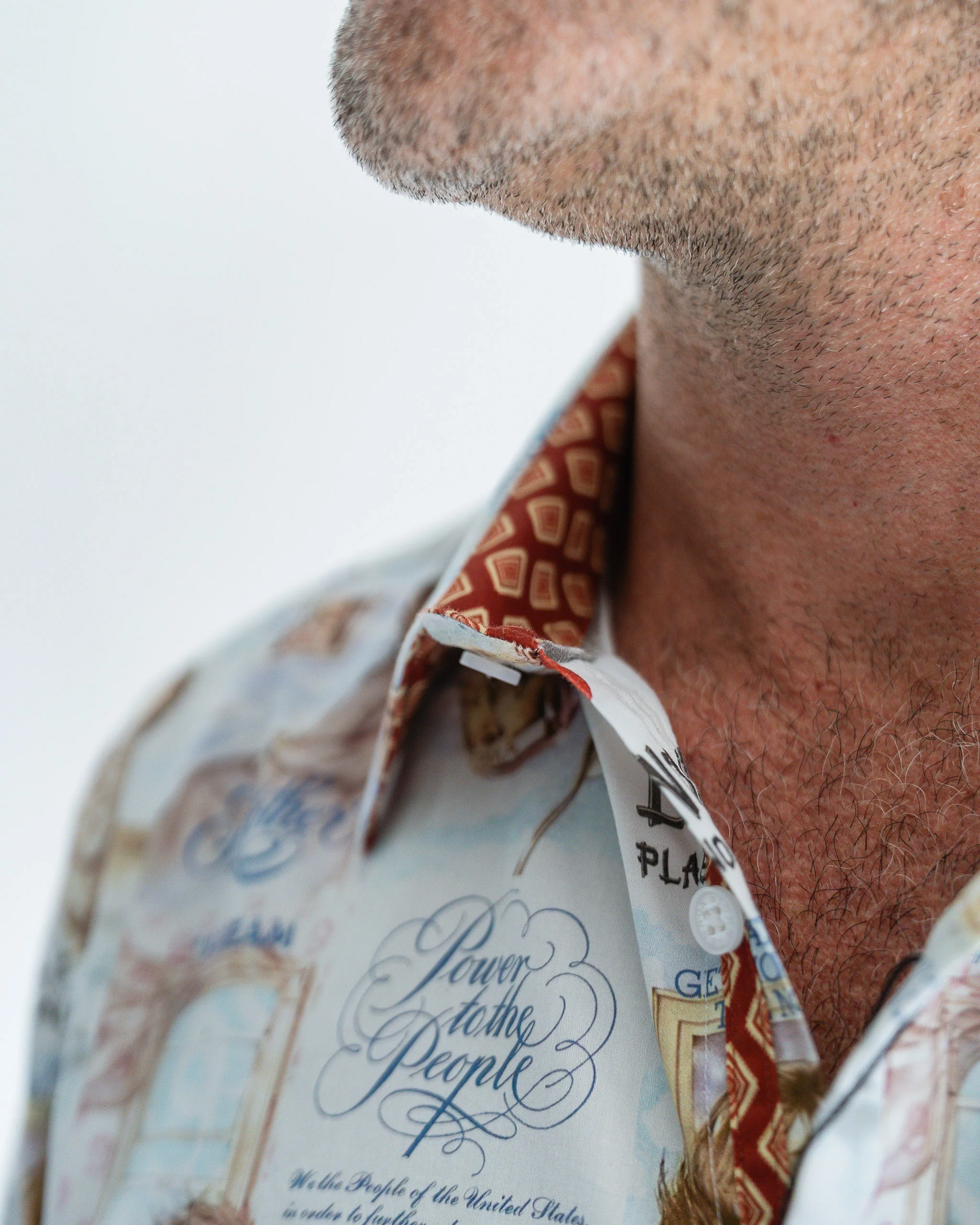 This unique long-sleeve shirt features designs and lyrics inspired by John Lennon's album Mind Games—a must-have for true rock n roll fans. Well-tailored and comfortable, this men's shirt features: 100% Cotton Classic Fit Printed Cotton Soft Feel Sateen Printed Collar and Cuff About English