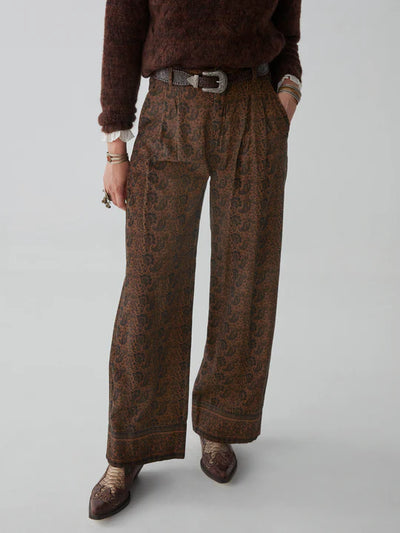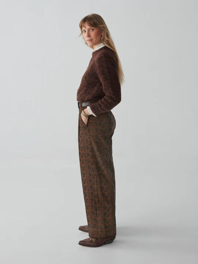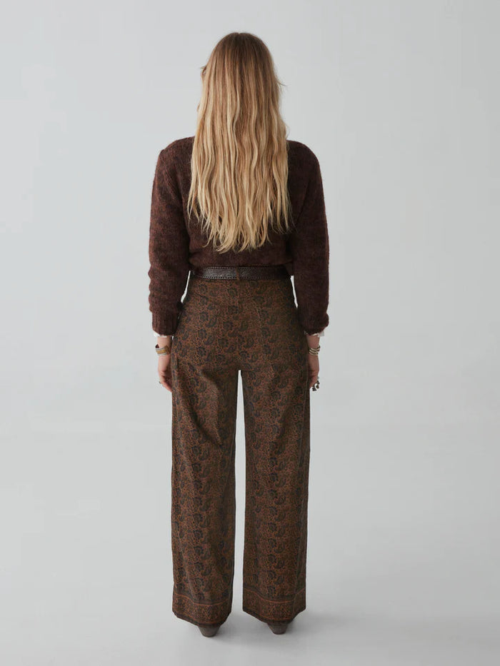 Corduroy makes a bold comeback with the Pepe Pant in Black Pepper. Featuring a printed design, these pants embrace a masculine, oversized fit with a pleated front for added structure. Practicality meets style with lateral and back pockets, while a contrasting pattern at the ankles sets them apart.