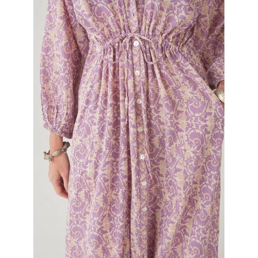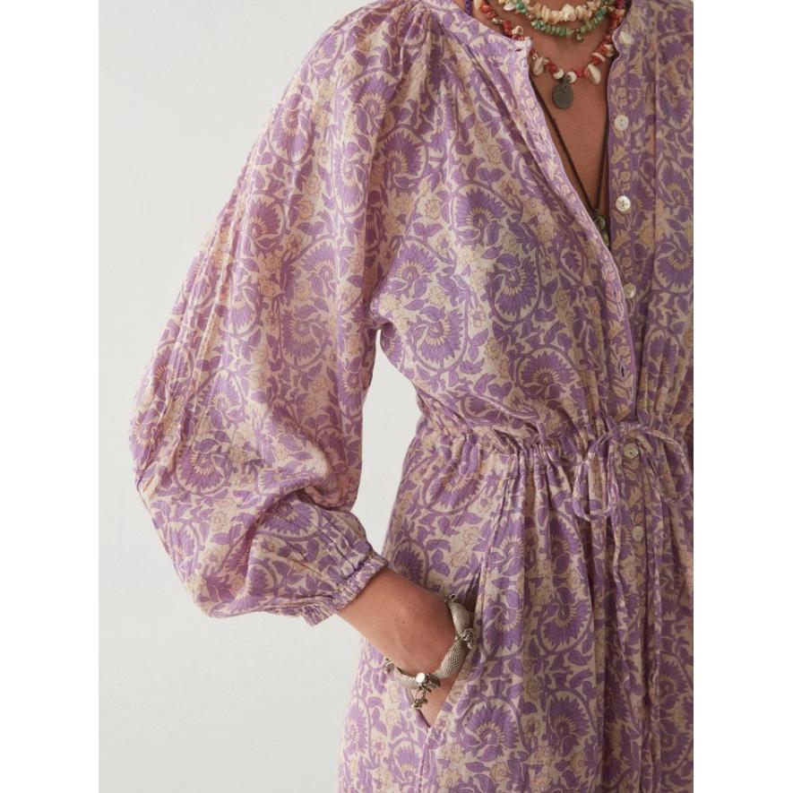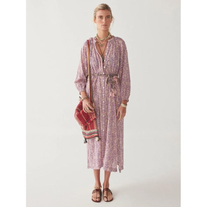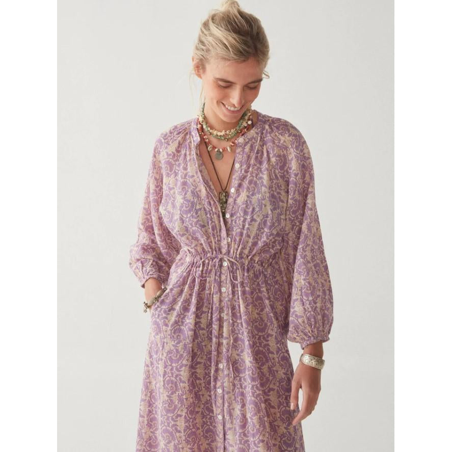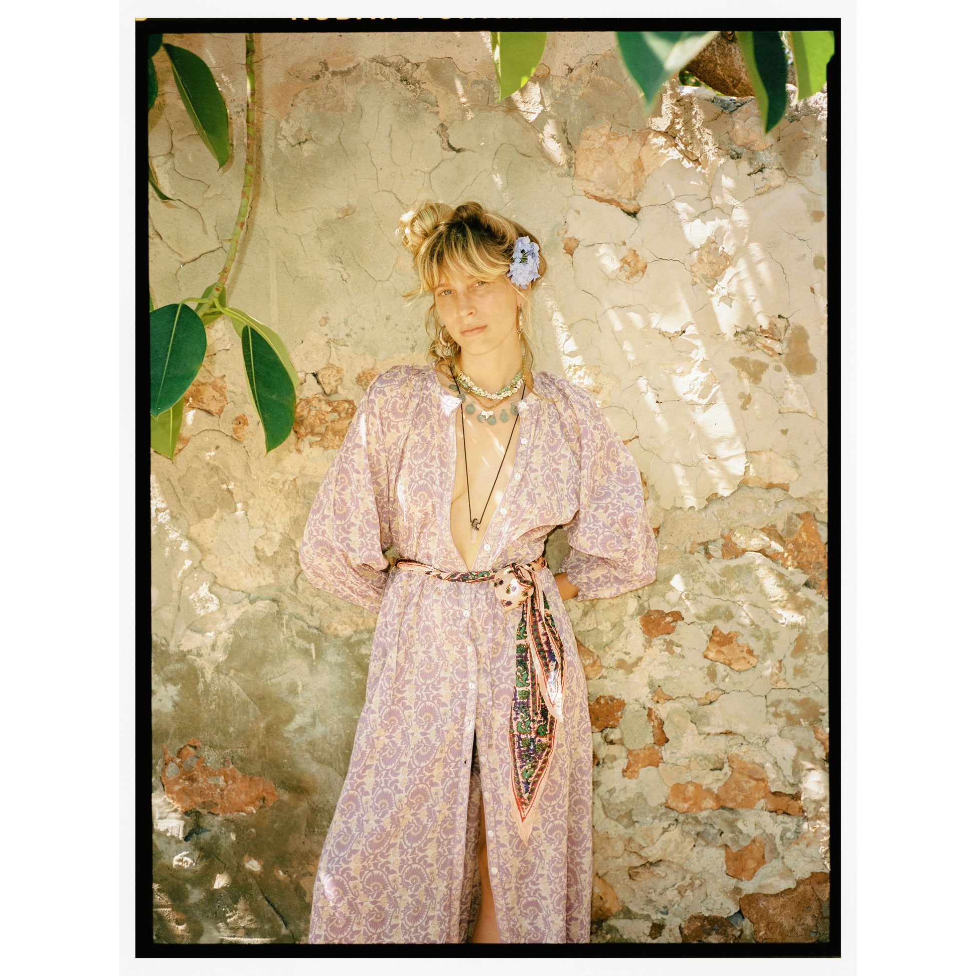 Cut in soft cotton gauze, the Casilda Dress features a truly ‘India-Bohemia’ print, with vintage colour hues and a contrast border to match.
