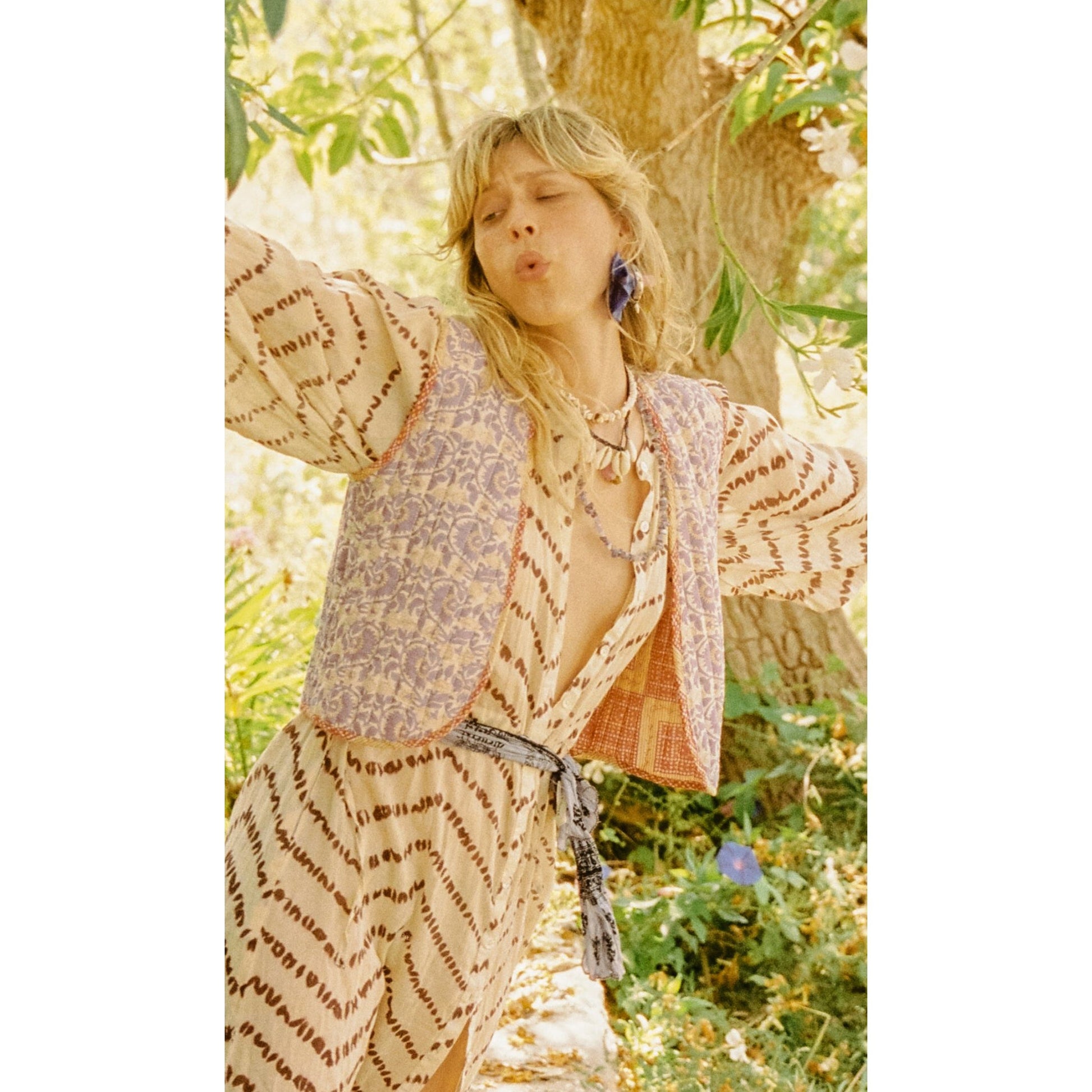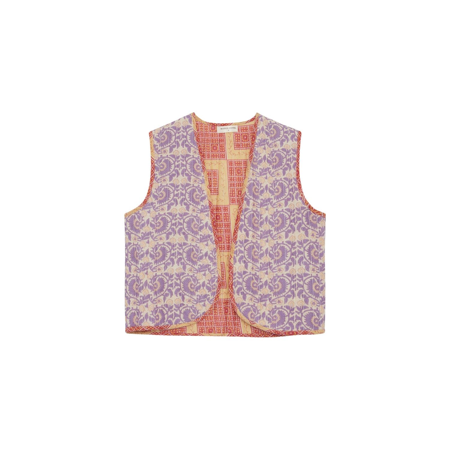The lightly quilted Telma vest is cut in soft cotton voile and features a contrast vintage border across the edges.