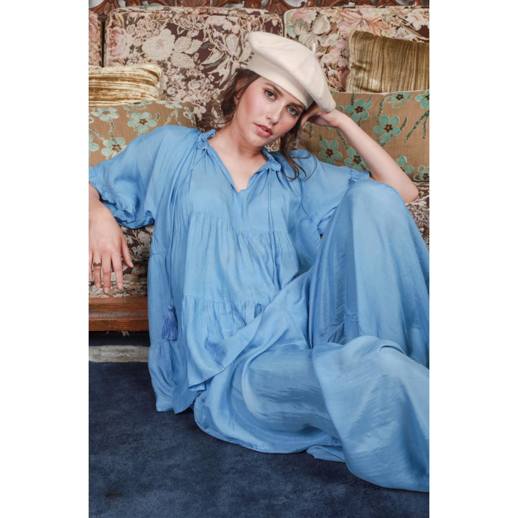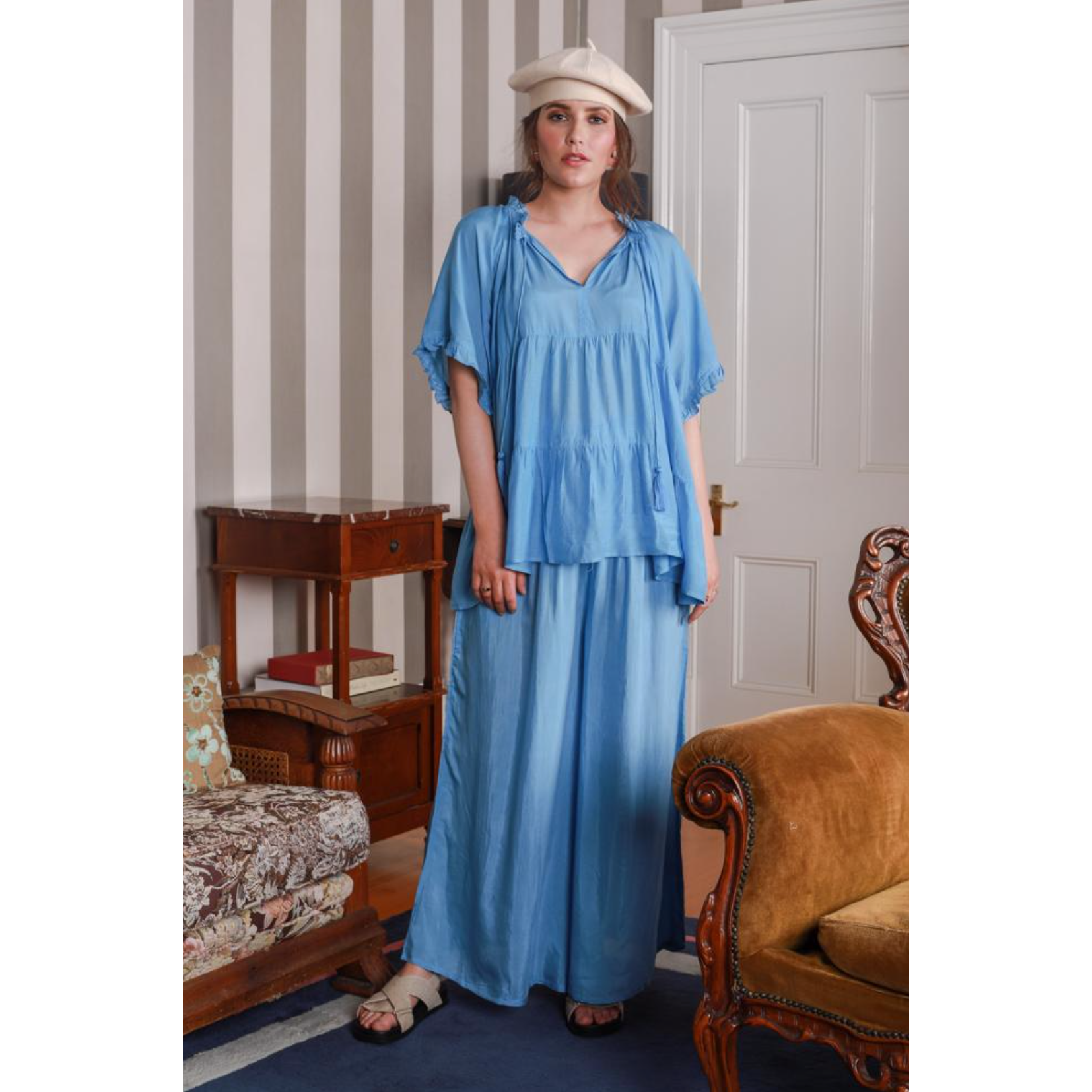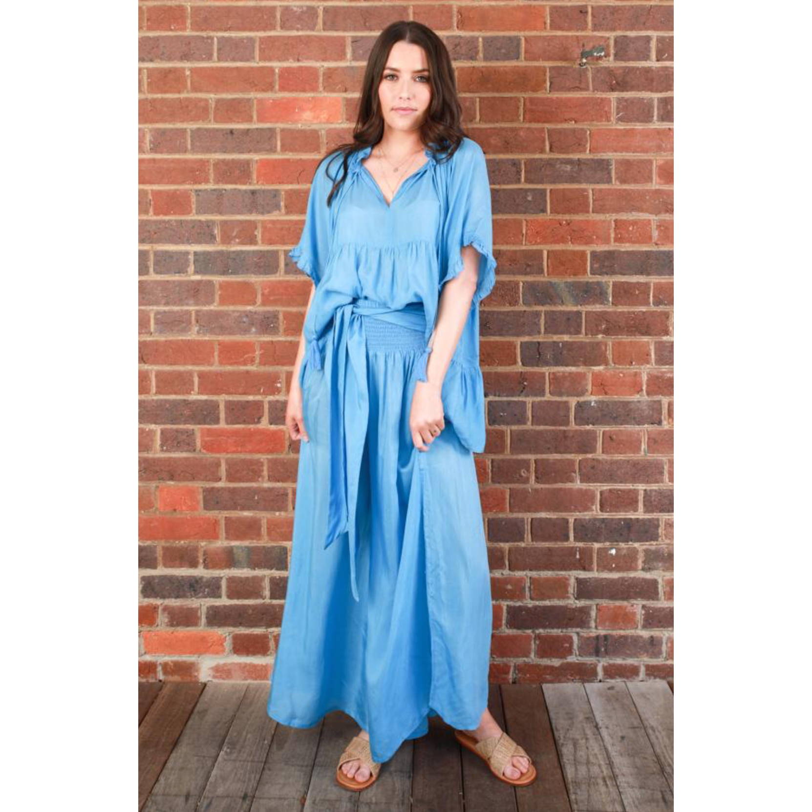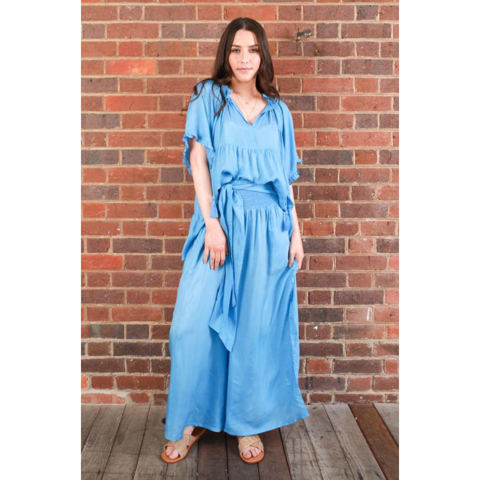 The modern bohemian pant, a wide soft floaty leg with a smocked elastic waist and attached belt to tie however you like. A mix of east and west elements, making them a timeless piece in your wardrobe.
