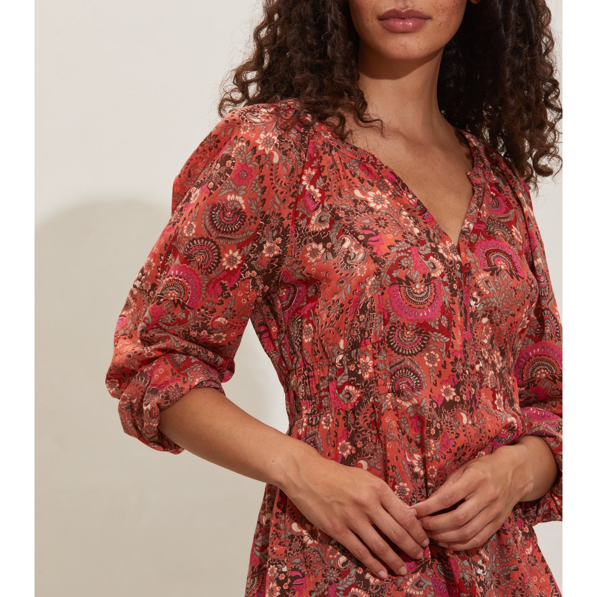 Look amazing in the Odd Molly Adele Blouse! A blouse with a unique print made by our own in-house print designer. It has a double layer collar around the neckline and cute smock details at the waist!