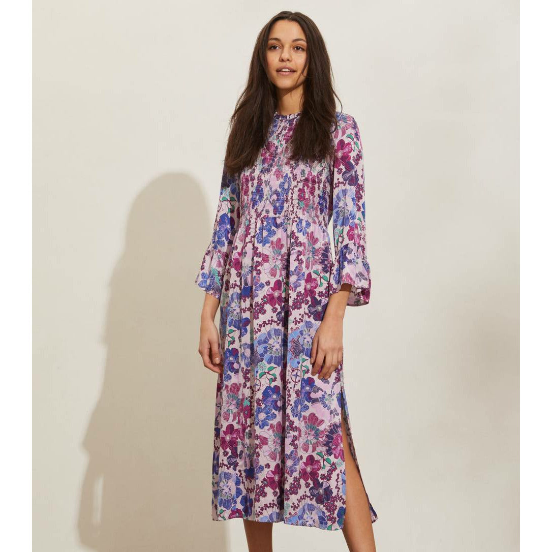 - 55% Viscose, 45% Sustainable Viscose (LENZING™ ECOVERO™) * Regular fit * 3/4 sleeve length * Smock at upper front body * Frill at neck * Cutline with frill at bottom of sleeve * Slit at sides * The model is 178 cm tall and wears size 1 * 200044-3003