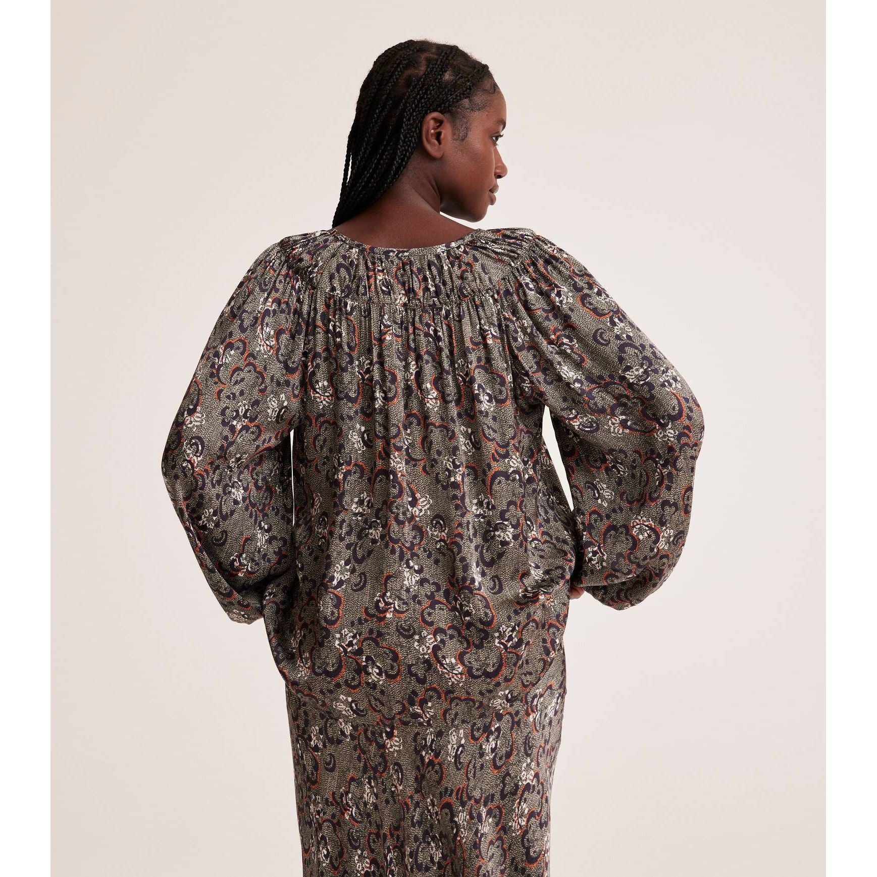 The Odd Molly Katarina Blouse is made of flowy viscose and has a loose fit. The long sleeves and the V-neck have gathers. The print artwork is made by our own in-house print designer. Pair it with the Katarina Skirt for a head-to-toe statement look.