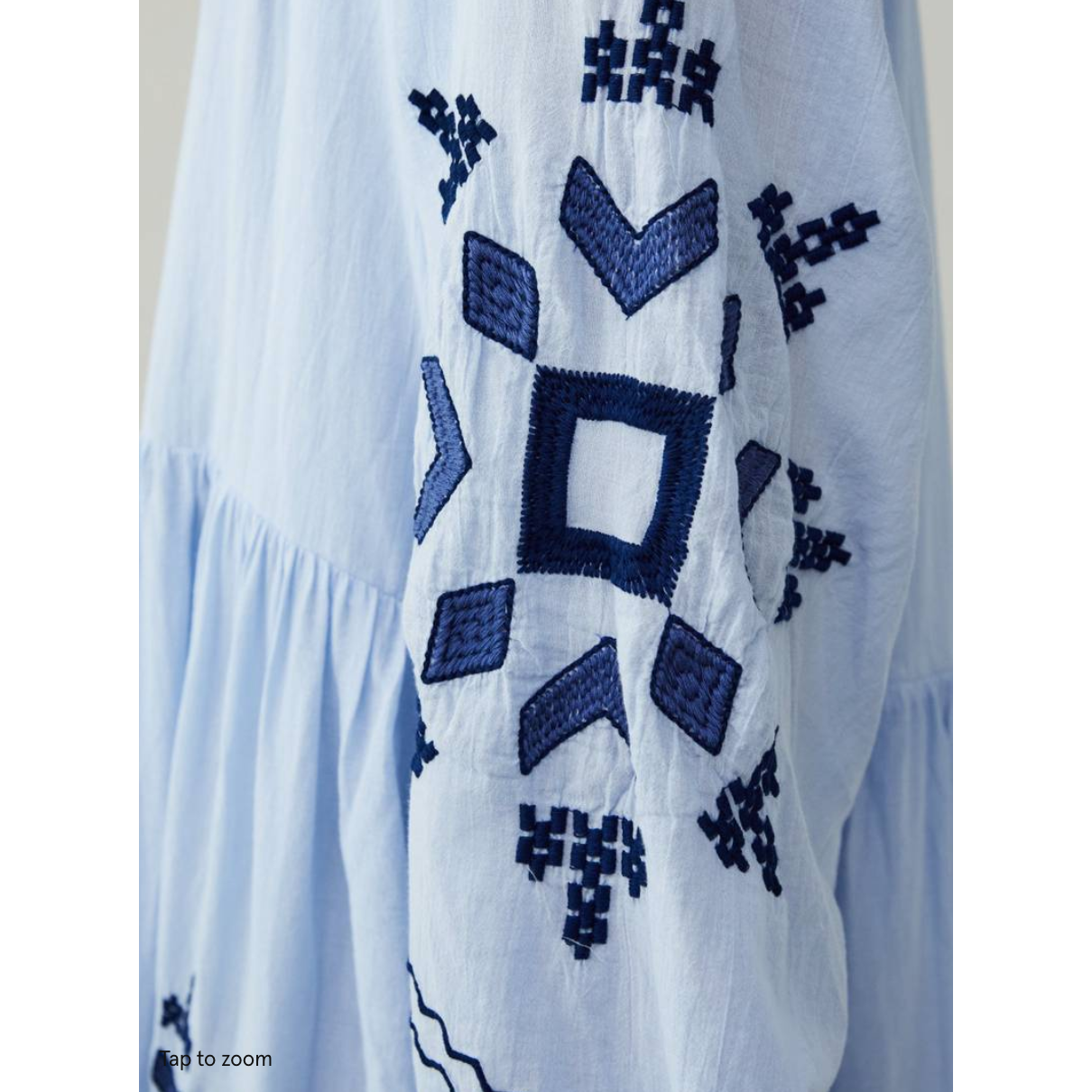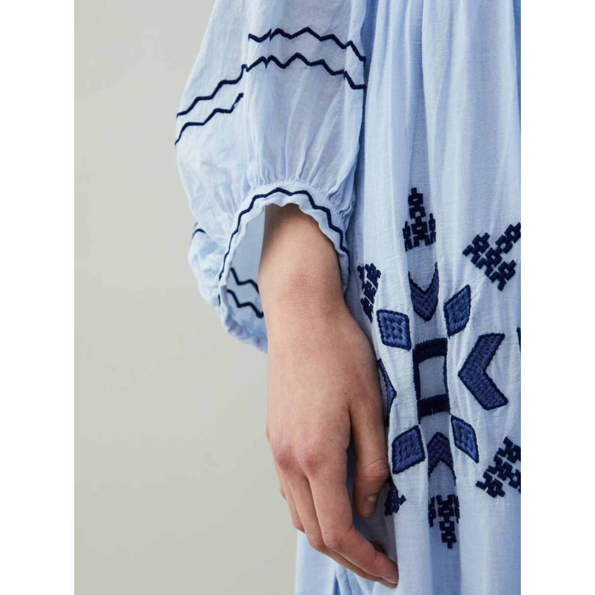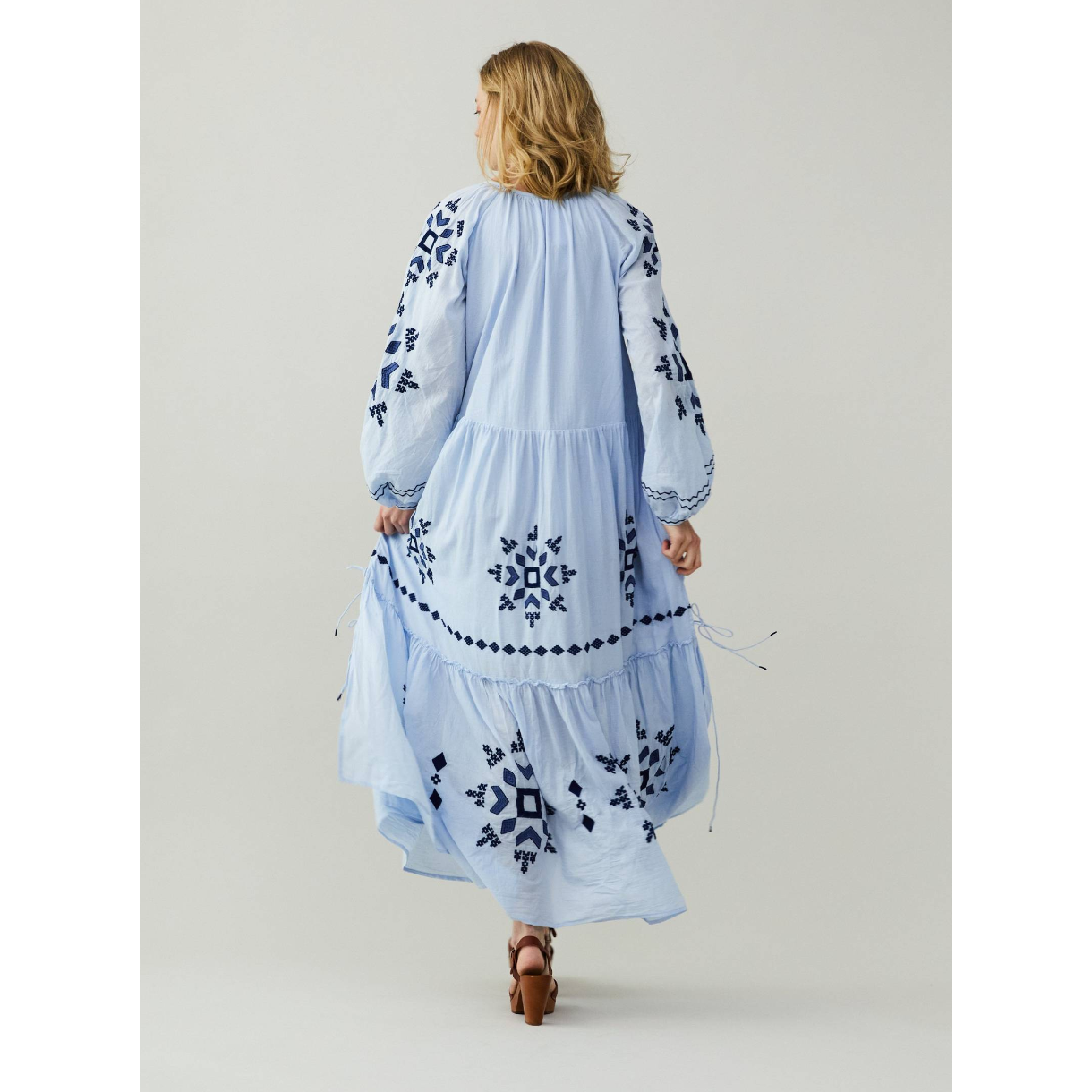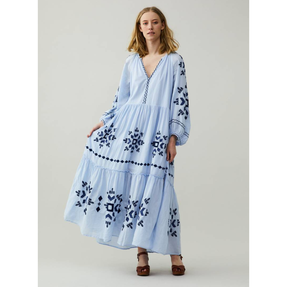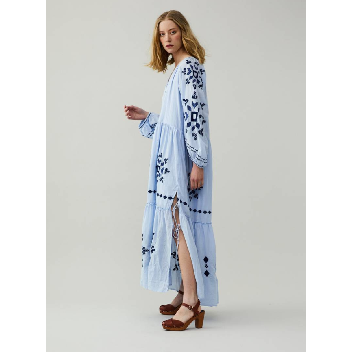 The Odd Molly Noor Dress is a long-sleeved organic cotton maxi dress. It has slits at the sides with attached tie strings. The sleeves have cuffs, giving them a nice balloon effect. A boho chic dress to wear season after season!