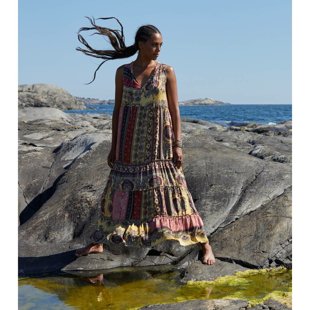 In love with the Odd Molly Robyn Long Dress? We are! It has it all. Beautiful allover print made by our own in-house print designer, decorative seams, frill details and adjustable drawstring around the neck with Molly dollars at end.