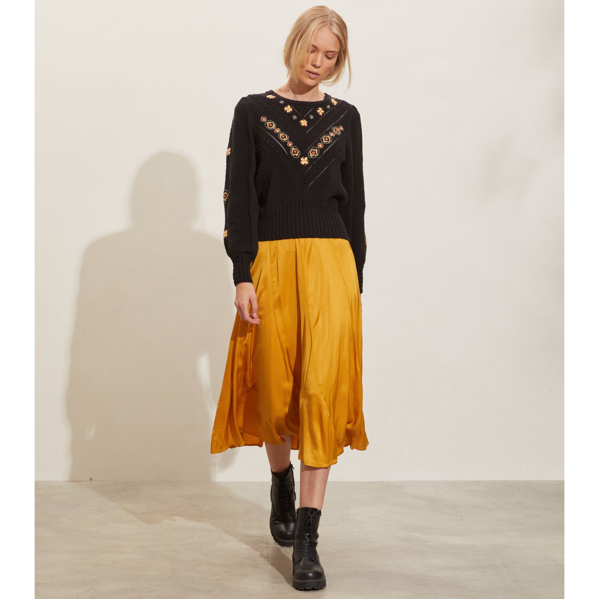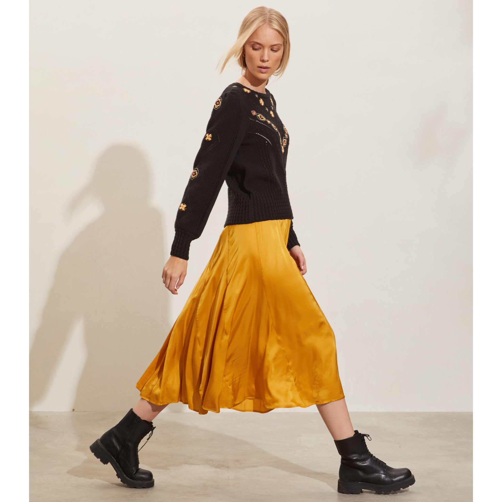 The Odd Molly Tatum Skirt is a gorgeous long skirt with smock at the waist. It has cutlines at the front and back and a folded hem.