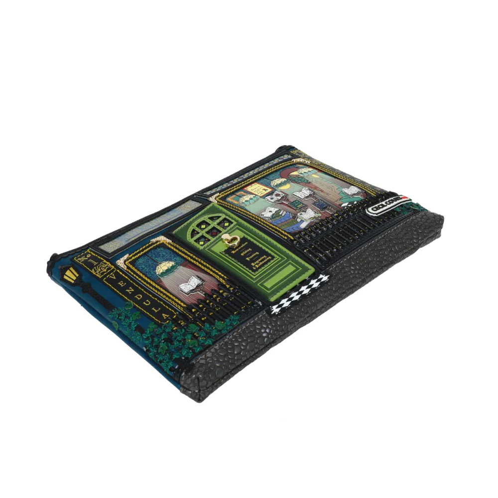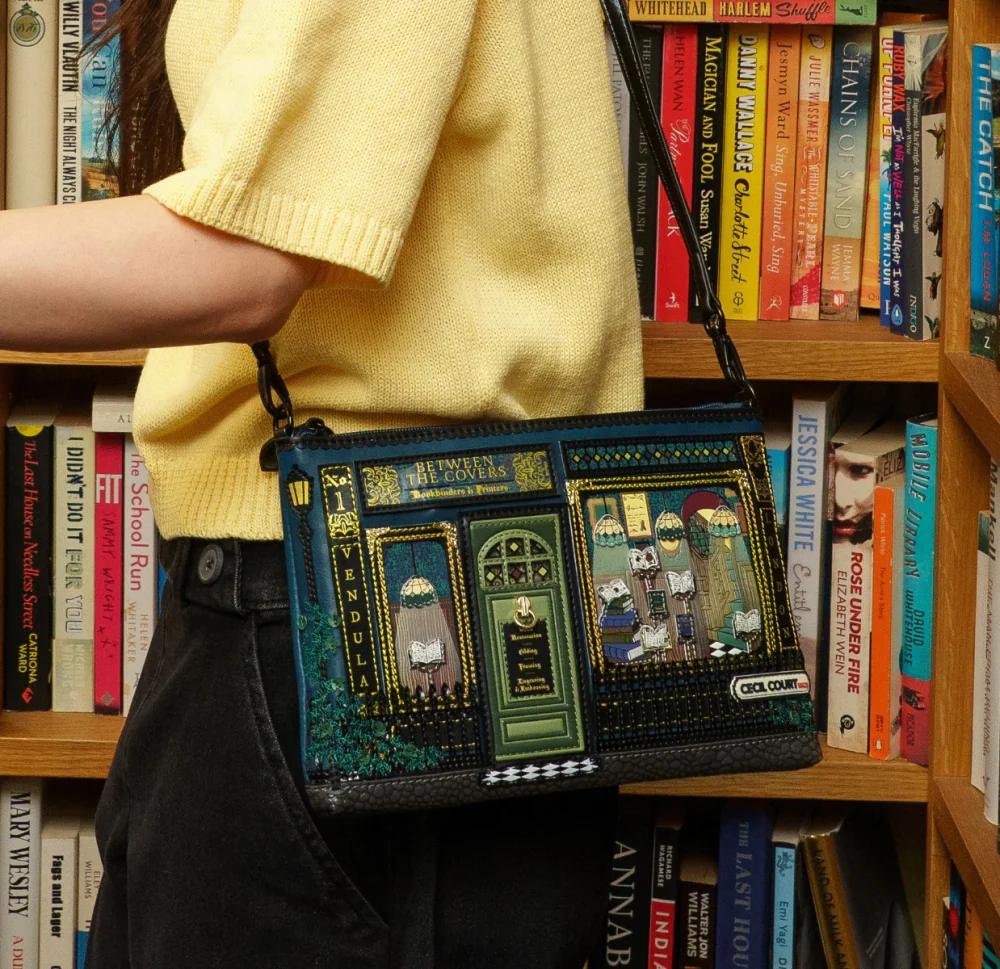 Whether you're a book lover or vintage shop enthusiast, the Between the Covers Bookbinders Kate Bag is sure to delight. This multifunctional vegan leather accessory can be used as a pouch, cosmetics bag, shoulder, or crossbody bag, thanks to its detachable strap. It features a spacious main compartment with multiple pockets to keep things organized. The intricate artwork invites you to explore every detail—just like a captivating novel. Fall in love at first glance, and even more when you see it in person.