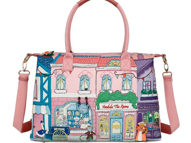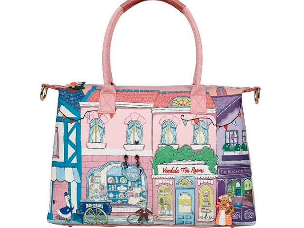 The first bag from this collection, the Vendula Heritage - Victorian Tea Rooms Bonnie Weekender, is large and spacious enough to fit everything you need for daily use or a few days away. It features two large, comfortable handles and a detachable strap, allowing you to carry it over the shoulder or crossbody, depending on the bag’s weight. Made of vegan leather, this stunning bag is adorned with a Victorian-era street print at the front, a colourful plate pattern at the back, along with 3D details, flower-shaped zip pullers, and an exclusive lining. Whether you’re a Vendula Heritage range collector or just looking for a practical bag, the Weekender will leave you nothing but delighted!