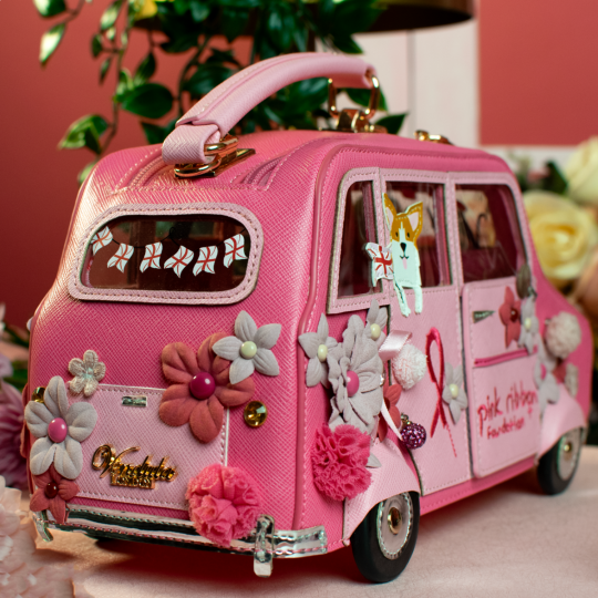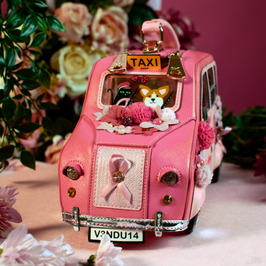 Look who’s back in town! The Vendula X Pink Ribbon Foundation - London Cats & Corgis Floral Pink Taxi is part of our new range in partnership with the Pink Ribbon Foundation and we couldn’t be happier. This London cab-shaped bag made of vegan leather can fit in all you need daily. It comes with a comfortable handle and a detachable strap, and it will stay stable on any surface thanks to the wheels. This boutique handbag looks incredible in pink, adorned with applique flowers and embroidery, and starring our legendary cat and corgi. Let them accompany you wherever you go this autumn/winter by treating yourself to a new Vendula bag, and all for a good cause!
