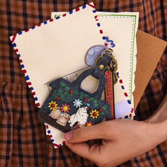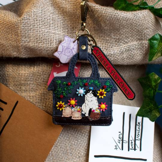 There is no such thing as having too many key charms! The Old Post Office - Navy Edition - Key Charm is a lovely little accessory that will match your Old Post Office bag and wallet. It comes with a clasp and a ring, so you can attach it to your handbag or to your keys. In the shape of a handbag, this quirky vegan leather charm is adorned with printed and embossed details, and it stars our friendly Postie Cat, busy delivering letters and surrounded by foliage and colourful flowers. How could you resist such a cutie?