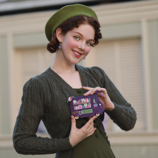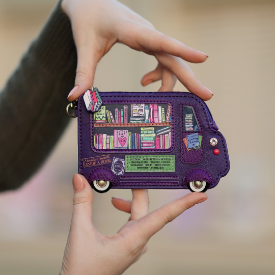 Were you just thinking about how nice it would be to have a purse to match your Vendula Travelling Library bag? Here is the Vendula Travelling Library Coin Purse! Aren’t we amazing mind-readers!? This new vegan leather purse from Vendula London is a small replica of the Vendula Travelling Library Truck Grab and Pouch bags. It may be small, but it has plenty of room for your cash and cards, or a mini Vendulette’s pocket money. You will love the printed and embossed details this coin purse is adorned with, especially these bookshelves, and will want to use it as often as possible!